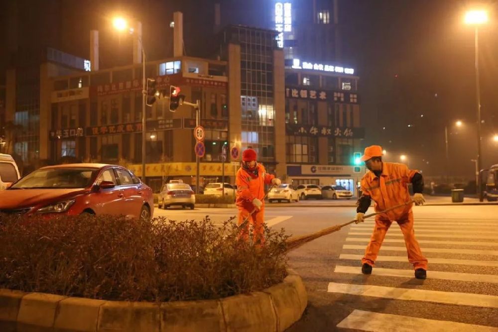 成都,環(huán)衛(wèi)工人開始了一天的工作。新華網(wǎng)發(fā)(曹鵬 攝)