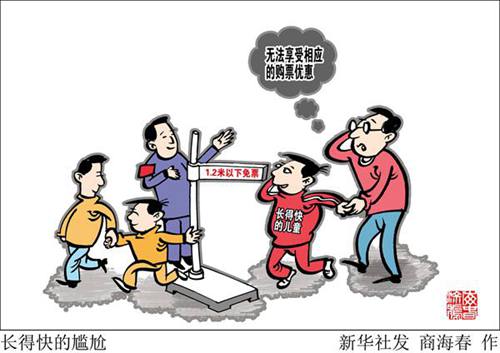 無論是聯合國兒童權利公約,還是我國相關法律法規,界定兒童的唯一標準就是年齡。他們與成年人最大的區別,是履行社會責任能力的不足,與高矮胖瘦無關。兒童票優惠政策是國家和社會對這一特殊群體的關懷,在個體生理狀況存在差異的情況下,年齡是最科學也最公平的標準。若依某項生理指標制定優惠標準,不但有失公允,而且有歧視之嫌。