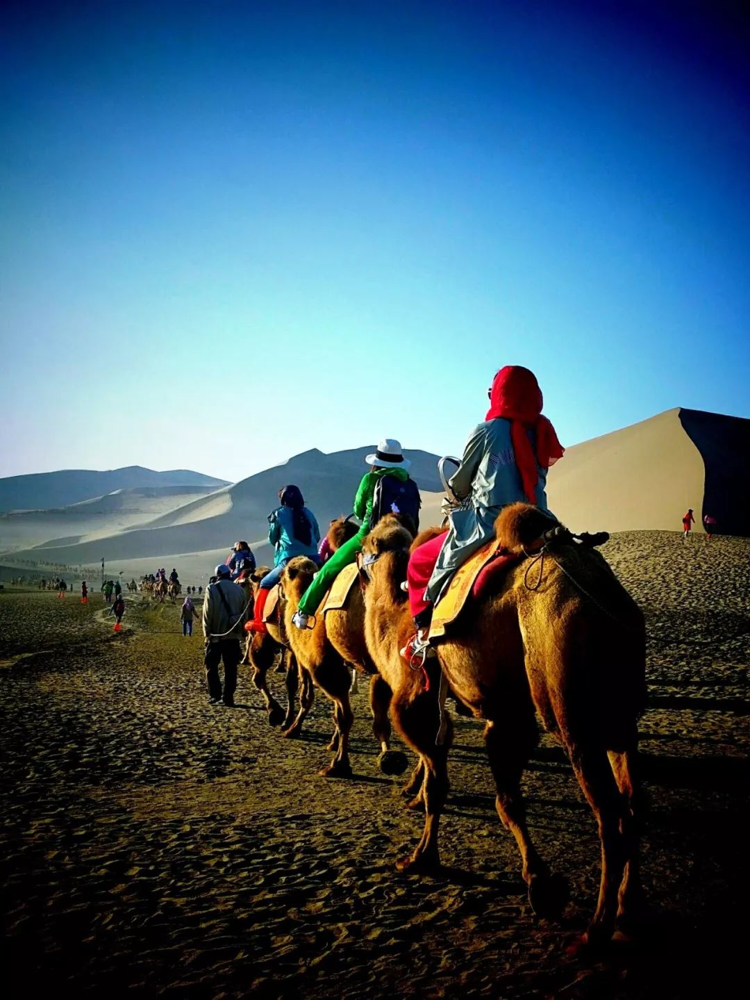 2018-09-09,甘肅敦煌。鳴沙山,駱駝是沙漠里人們的希望。作者:丁愛娟