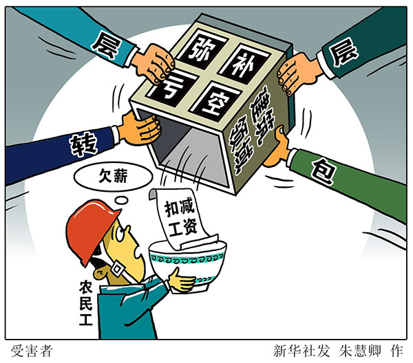 濟南市農民工綜合服務中心主任丁麟宏說,一些施工單位為取得承包權,惡意競爭壓低價格,再將工程和勞務關系層層發包,延長了風險鏈條,而一旦工程款等前端環節出現合同損失,施工方便以扣減工資方式彌補虧空,最終使農民工成為受害者。