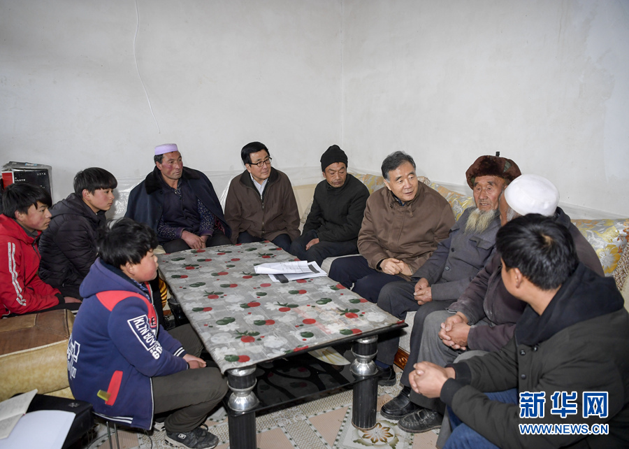 近日,中共中央政治局常委、全國政協(xié)主席汪洋在甘肅臨夏回族自治州調(diào)研脫貧攻堅工作,看望慰問貧困群眾和基層扶貧干部。這是1月13日,汪洋在積石山保安族東鄉(xiāng)族撒拉族自治縣劉集鄉(xiāng)肖家村看望慰問貧困戶。 新華社記者 李學仁 攝