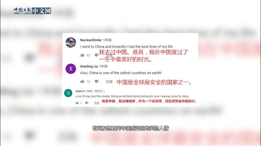 2018年12月23日,旅游博主“Travellight”在YouTube發(fā)布題為“我太想念中國(guó)”的視頻,該視頻點(diǎn)擊量高達(dá)12.1萬(wàn)次。她在視頻中表示,剛剛離開(kāi)中國(guó)幾個(gè)月,就迫不及待地想回來(lái)。