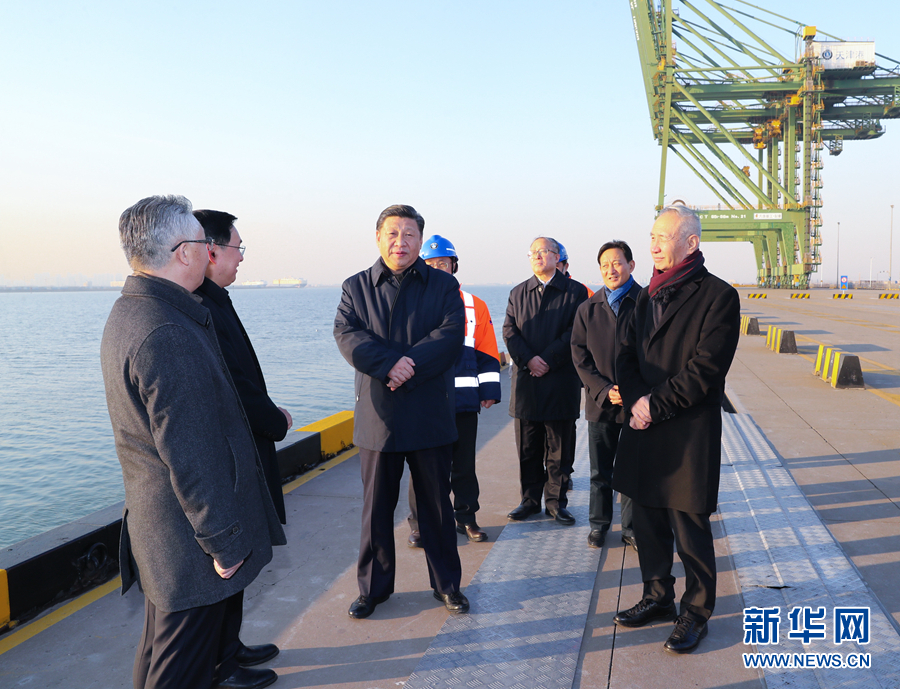 1月16日至18日,中共中央總書記、國家主席、中央軍委主席習近平在京津冀考察,主持召開京津冀協(xié)同發(fā)展座談會并發(fā)表重要講話。這是1月17日下午,習近平在天津港碼頭考察。 新華社記者 鞠鵬 攝
