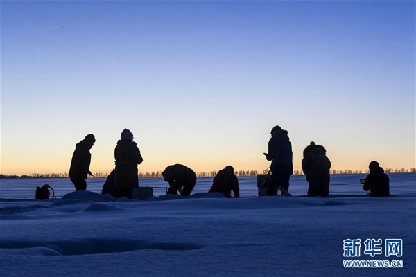 在新疆昭蘇縣喀夏加爾鎮(zhèn)薩爾烏孜克村的積雪調(diào)查區(qū),隊(duì)員們在觀測采集積雪特征數(shù)據(jù)(1月18日攝)。 新華社記者 胡虎虎 攝