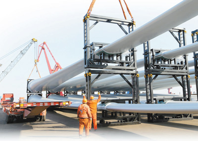 近日,大批國產成套風電設備在江蘇省連云港港口集港準備出口澳大利亞。