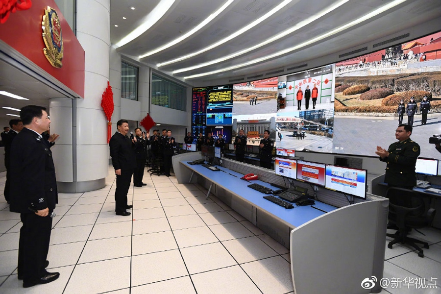 2月1日上午,習近平在京看望慰問基層干部群眾。他首先來到北京市公安局考察,同一線執勤民警視頻連線,并同北京市公安英模代表親切交談。習近平強調,平時你們就是風里來、雨里去,戰嚴寒、斗酷暑,“白加黑”“五加二”。和平時期最辛苦最勞累、付出犧牲貢獻最大的是公安干警。黨和人民都感謝你們!他指出,公安戰線使命光榮、責任重大。要用底線思維、問題導向來思考工作,始終不能松懈、不能懈怠,努力鍛造一支能打勝仗的隊伍。習近平向他們和全國公安戰線的同志們致以誠摯問候和新春祝福。(記者張曉松、謝環馳)