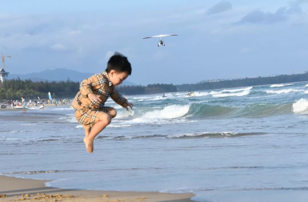 2019-02-03,海南省三亞市。一個小孩想和飛機比誰高。作者:冉建秀