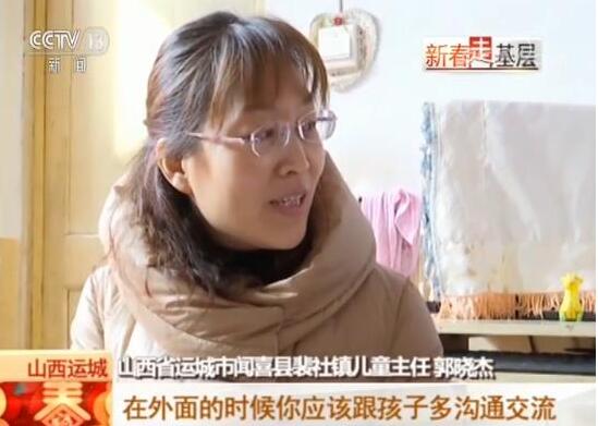 我國從2016年開始對全國留守兒童進行摸底調查,繼而開始推動基層兒童工作隊伍建設,目前全國已經有62.5萬名村居兒童主任,在兜底保障近700萬留守兒童的生活。春節前,新春走基層的記者來到山西省運城市聞喜縣,這里是我國最早設立兒童主任的試點地區,郭曉杰就是一位守護100多名留守兒童的村居兒童主任。