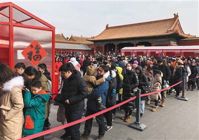 昨日,故宮,游客排隊(duì)參觀“中華老字號(hào)故宮過(guò)大年展”。新京報(bào)記者 浦峰 攝