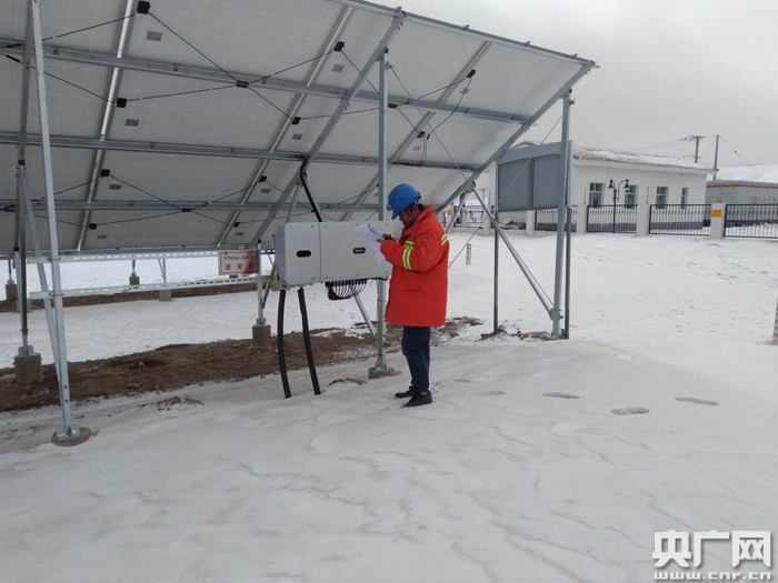 青海送變電工程公司員工春節期間巡視瑪多4..4兆瓦光伏扶貧電站(央廣網發 熊增亮 攝)