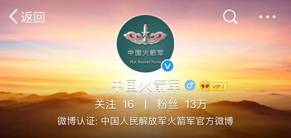 對于火箭軍官方微博上線