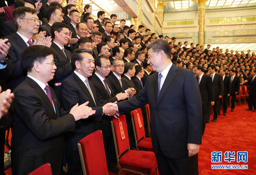 2月20日,黨和國家領(lǐng)導(dǎo)人習(xí)近平、李克強、栗戰(zhàn)書、汪洋、王滬寧、趙樂際、韓正等在北京人民大會堂會見探月工程嫦娥四號任務(wù)參研參試人員代表。習(xí)近平發(fā)表重要講話。 新華社記者黃敬文攝