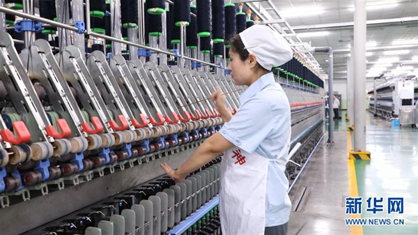 2月18日,在蘭州三毛實業股份有限公司紡紗廠,范冬云在進行“接線”操作。新華社發(張智敏 攝)
