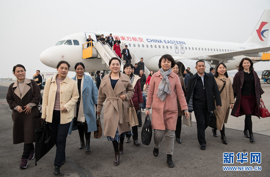 3月2日,來自甘肅省的全國人大代表乘坐飛機抵達北京。 新華社記者金立旺攝