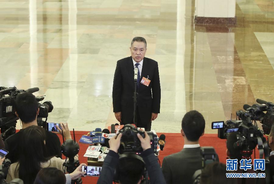 3月5日,第十三屆全國人民代表大會第二次會議在北京人民大會堂開幕。這是國家市場監督管理總局局長張茅在“部長通道”接受采訪。 新華社記者 殷剛 攝