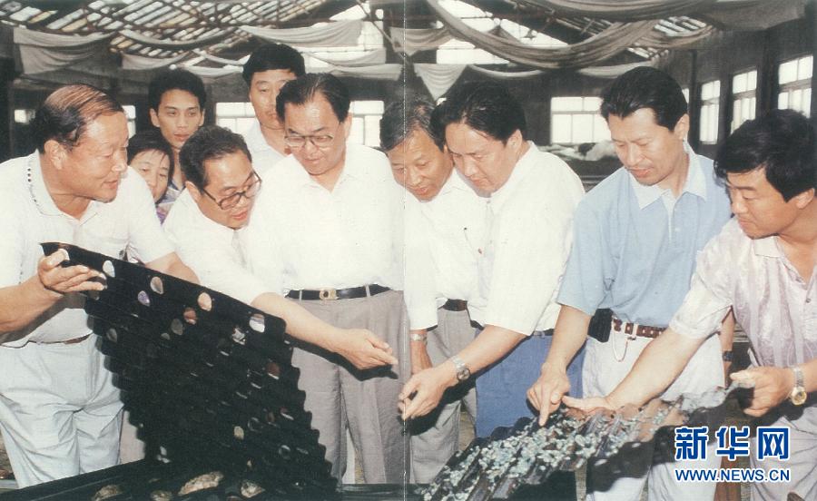 1993年,胡錦濤同志與毛致用同志在一起。 新華社發