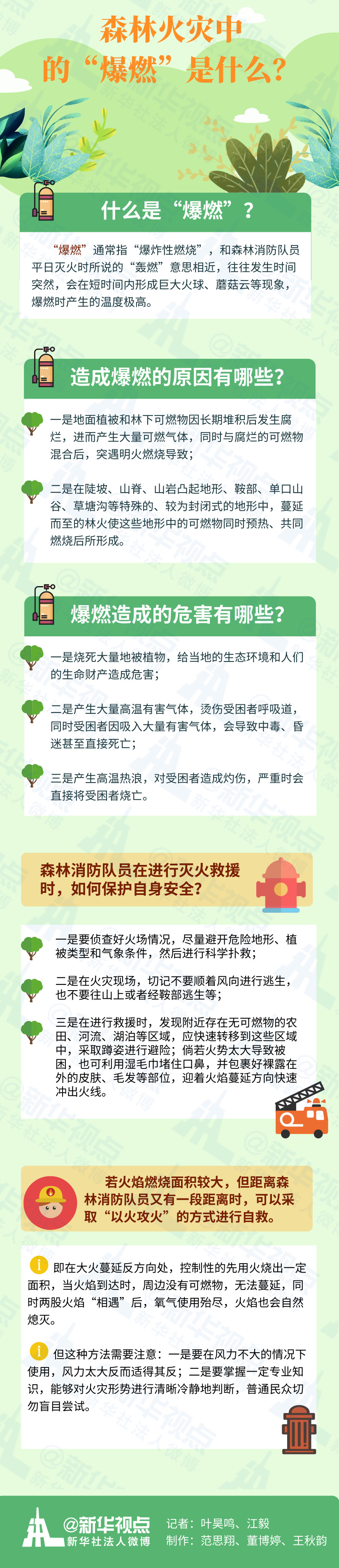 什么是“爆燃”?中國森林消防學(xué)科帶頭人白夜說:“‘爆燃’ 通常指‘爆炸性燃燒’,和森林消防隊員平日滅火時所說的‘轟燃’意思相近,往往發(fā)生時間突然,會在短時間內(nèi)形成巨大火球、蘑菇云等現(xiàn)象,爆燃時產(chǎn)生的溫度極高。”
