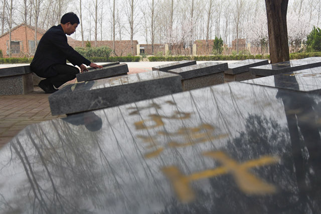 3月20日,張景憲在張和莊烈士陵園內(nèi)。