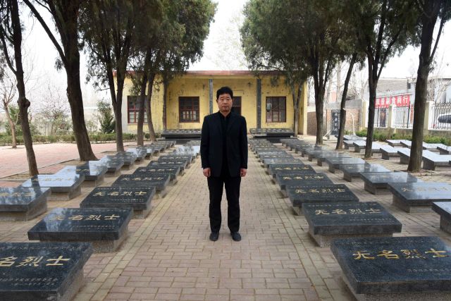 張景憲在張和莊烈士陵園內(nèi)(3月20日攝)。