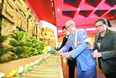昨天,在中國人民抗日戰(zhàn)爭紀(jì)念館,老戰(zhàn)士代表、首都大中小學(xué)學(xué)生、部隊官兵等向革命先驅(qū)獻(xiàn)花。本報記者 饒強(qiáng)攝