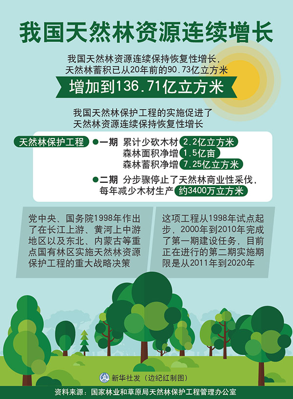 圖表:我國天然林資源連續(xù)增長 新華社發(fā) 邊紀紅 制圖