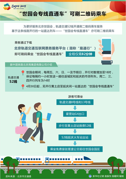 圖表:“世園會專線直通車”可刷二維碼乘車 新華社記者 曲振東 施鰻珂 編制