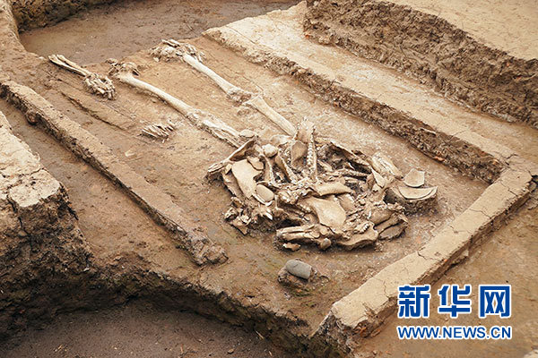 這是黃山遺址發現的疑似屈家嶺文化氏族首領的高等級墓葬(4月29日攝)。 新華社記者 袁月明 攝