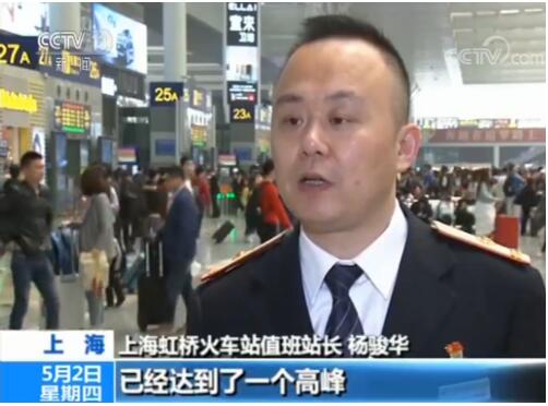 上海虹橋火車(chē)站值班站長(zhǎng) 楊駿華:在整個(gè)車(chē)站全年當(dāng)中已經(jīng)達(dá)到了一個(gè)高峰,接近了我們春運(yùn)的最高峰33.3萬(wàn)人次。