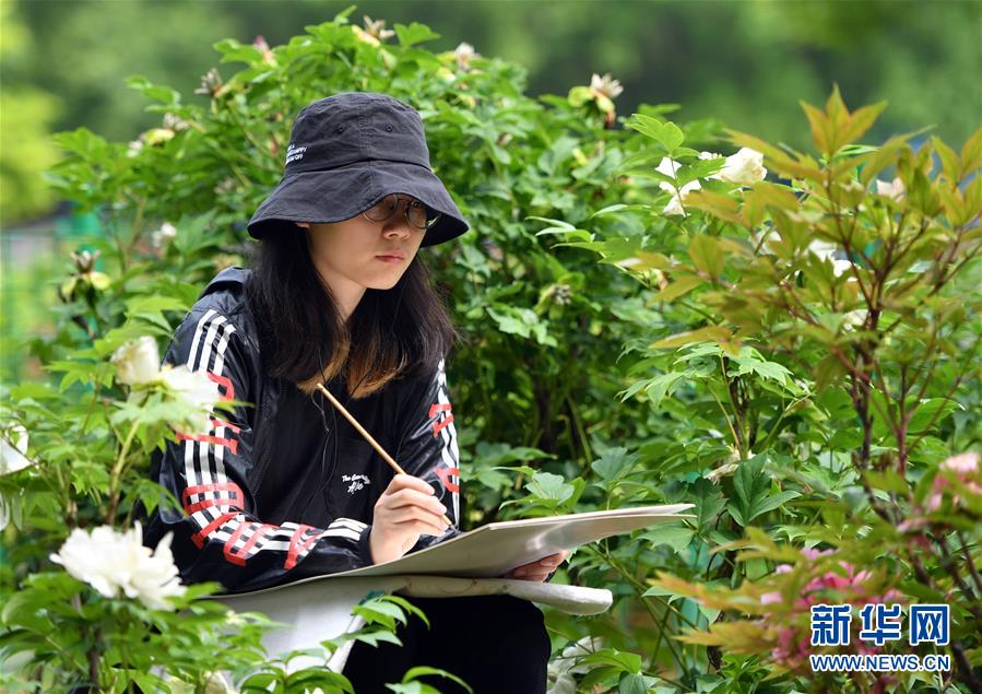 寫生愛好者在洛陽國家牡丹園內寫生(4月24日攝)。新華社記者 李嘉南 攝