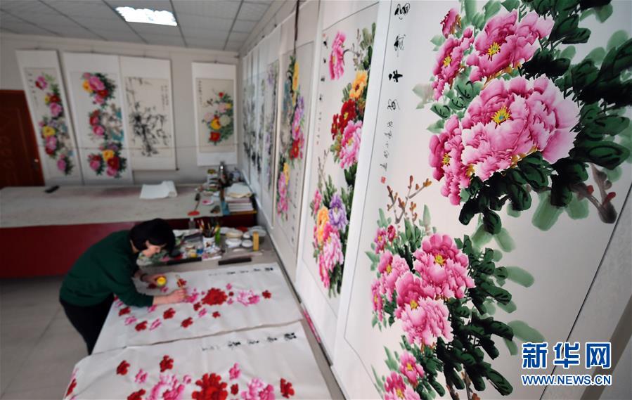 畫師在中國平樂牡丹畫創意園區進行創作(4月25日攝)。新華社記者 李嘉南 攝