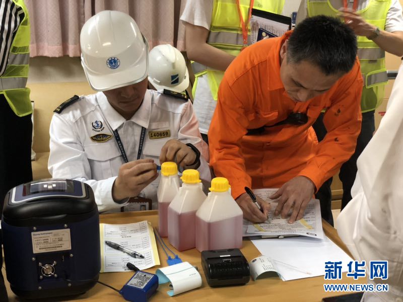 6月1日,深圳海事局執(zhí)法人員正使用快速燃油檢驗(yàn)儀檢測燃油。