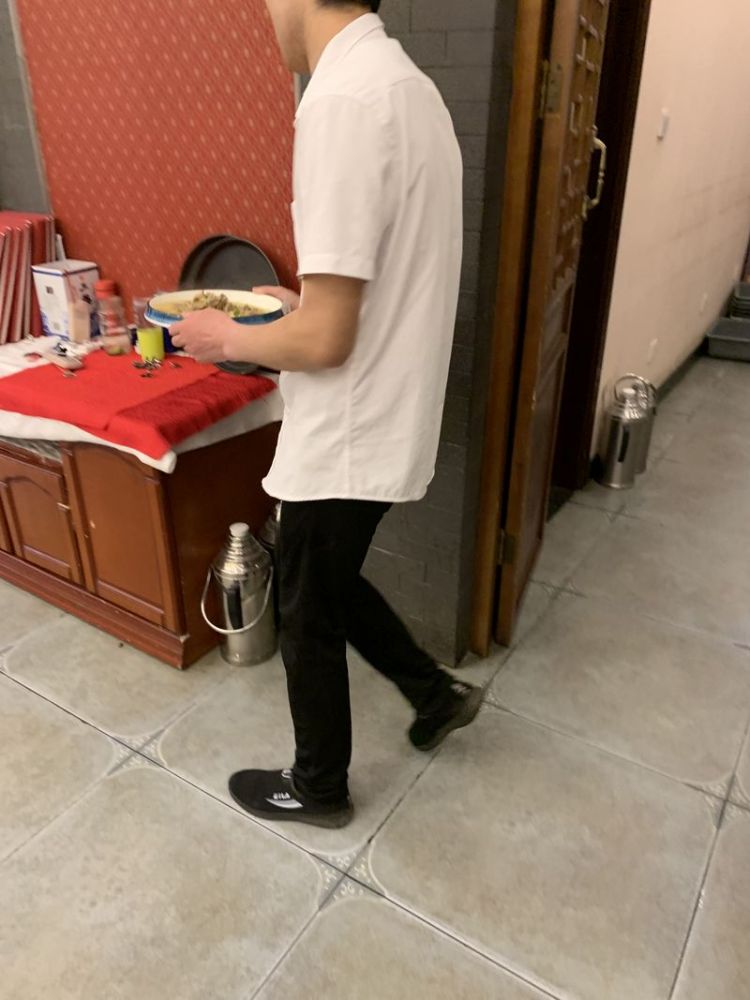 5月23日,記者來到致美齋飯莊應聘。在未出示健康證和其他有效證件的情況下,飯店總經理陳某當即同意記者入職。記者還未進行培訓和個人衛生消毒,便被領班王某安排傳菜工作。
