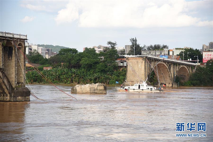 6月14日,從空中俯瞰垮塌的河源東江大橋(無人機拍攝)。新華社記者 王瑞平 攝