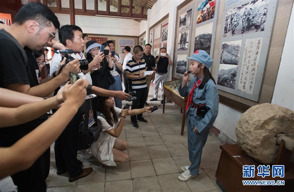 8月4日,來自湖北省麻城市乘馬中學的“小小講解員”在乘馬會館為記者講述紅色歷史故事。新華社記者 肖藝九 攝