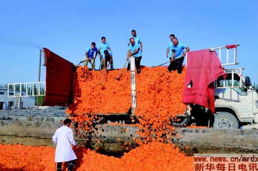 可對于大面積種植萬壽菊,“吃過不少虧”的當(dāng)?shù)厝艘苍羞^猶豫與懷疑。莎車縣副縣長樊海濤告訴記者,作為“國貧縣”,莎車也曾引進(jìn)過一些農(nóng)業(yè)龍頭企業(yè),都因企業(yè)創(chuàng)新能力不足、市場變化等原因合作失敗,所以對于萬壽菊的種植很是謹(jǐn)慎。2011年試種了300畝,發(fā)現(xiàn)效果很好,所以第二年一下子就種了3萬畝。