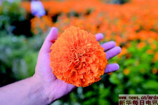 從2011年開始,萬壽菊被帶到了這里,生根繁衍,從300畝、3萬畝……一直到16萬畝,而且還將繼續(xù)蔓延開來,匯成花的海洋!
