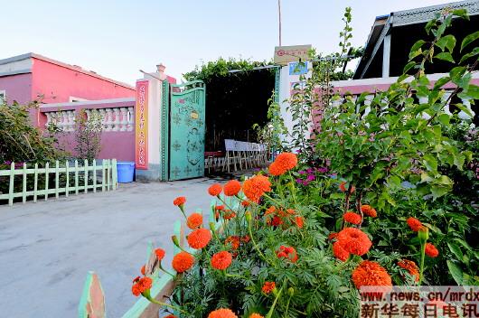 莎車縣維吾爾族農(nóng)戶的院子門前也栽滿了萬壽菊花。