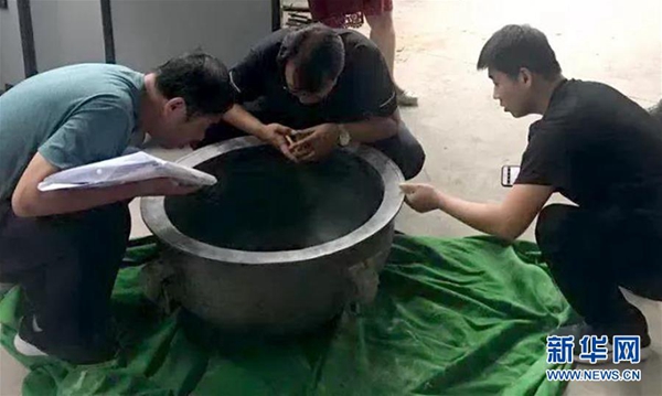 據(jù)了解,“鑒盆”為西周時期一種體積較大的多功能容器。此次查獲的“鑒盆”直徑約70厘米,專家初步鑒定為國家二級文物。