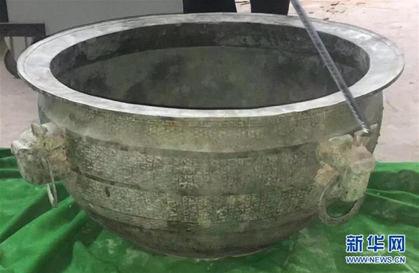 警方在蘭州市西固區(qū)河口鎮(zhèn)一倉庫內(nèi)截獲文物“鑒盆”(8月8日攝)。新華社發(fā) (蘭州市公安局新聞辦 供圖)