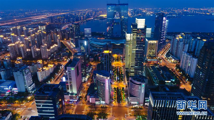 蘇州工業園區夜景(2017年5月9日無人機拍攝)。新華社記者 李響 攝