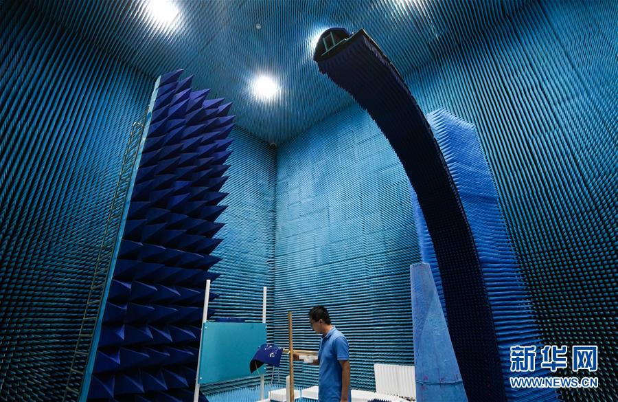在江蘇南京江寧經濟技術開發區,科研人員在網絡通信與安全紫金山實驗室的微波暗室內工作(6月6日攝)。新華社記者 李響 攝