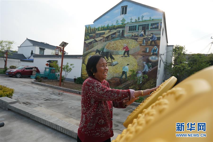 在宿遷市耿車鎮大眾村,村民劉翠珍在家旁的村民廣場健身(4月16日攝)。新華社記者 季春鵬 攝