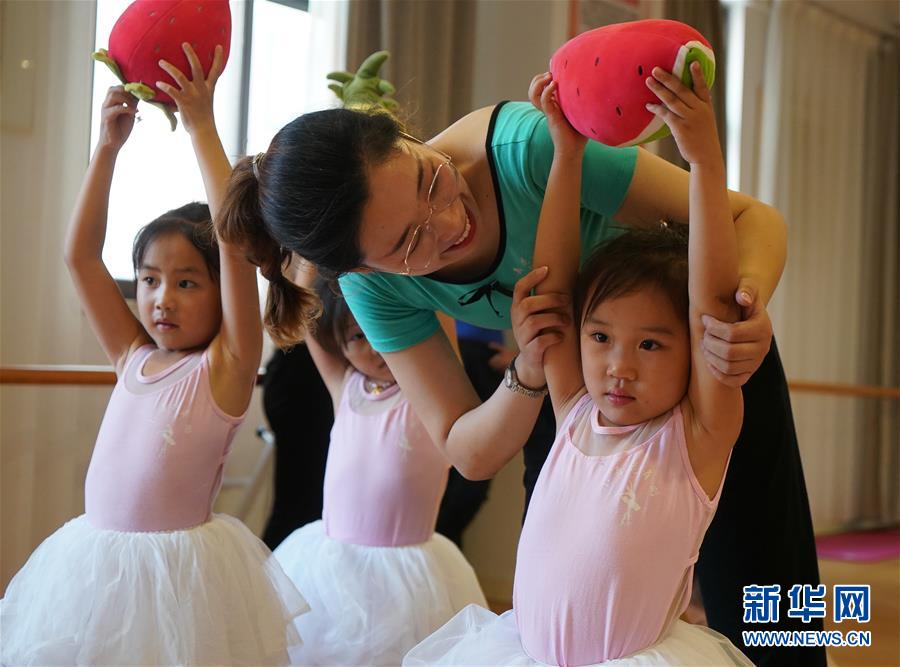 在宿遷市洋河新區新城名苑社區活動中心,小朋友們在老師的指導下練習舞蹈動作(7月15日攝)。新華社記者 季春鵬 攝