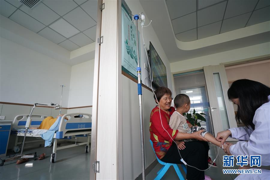 在宿遷市宿豫區新莊鎮杉荷園社區衛生室,患者在接受治療(7月16日攝)。新華社記者 季春鵬 攝