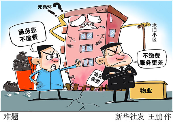 垃圾隨意丟棄、車輛亂停亂放、流動商販隨意出入……當前,有的老舊小區根本沒有物業管,有的物業管得很差。一些居民因物業“服務差”不繳費,而物業也往往以“入不敷出”為由敷衍了事。