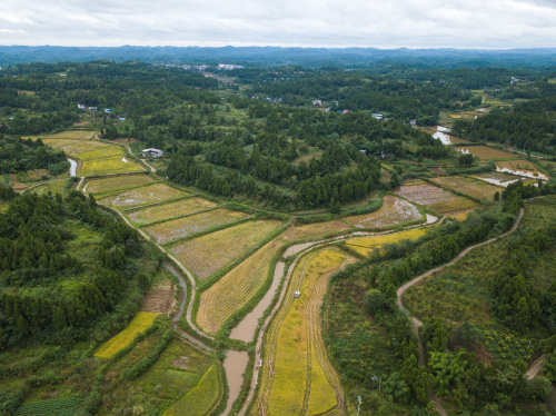 無人機拍攝的四川省樂至縣三河咀村的稻田 李昕鋒 攝