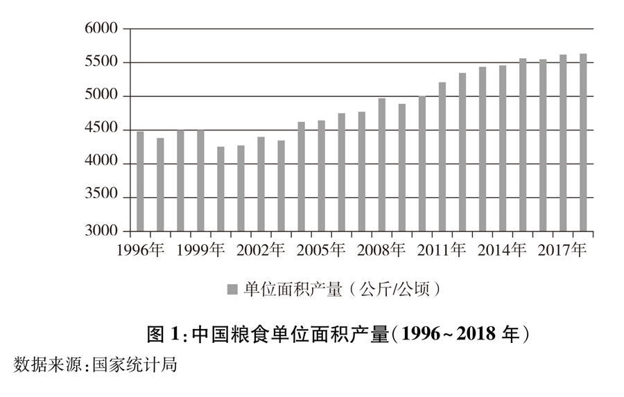 圖1:中國糧食單位面積產(chǎn)量(1996~2018年) 新華社發(fā)