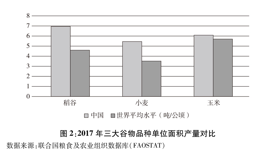 圖2:2017年三大谷物品種單位面積產(chǎn)量對比 新華社發(fā)