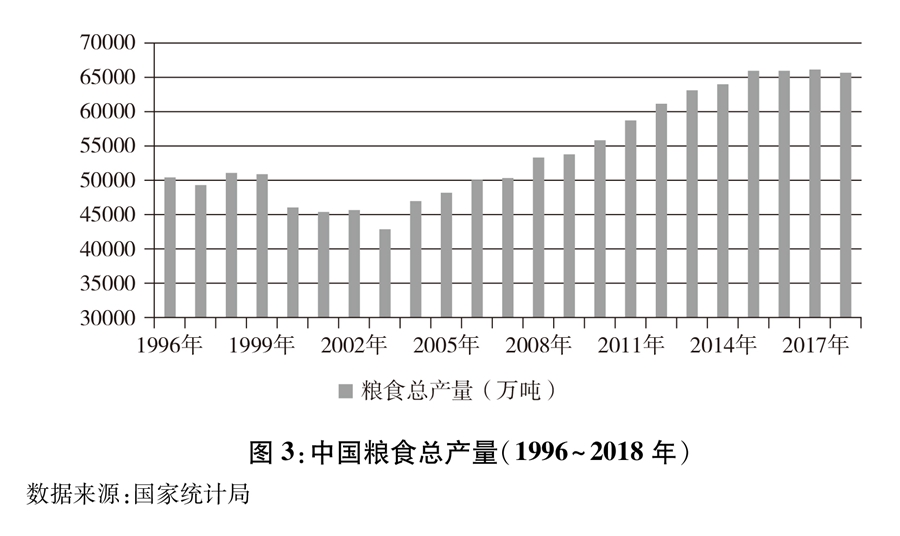 圖3:中國糧食總產(chǎn)量(1996~2018年) 新華社發(fā)