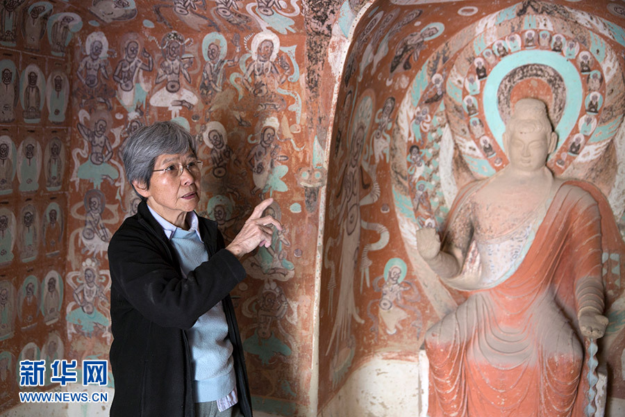 樊錦詩在敦煌莫高窟(2015年9月29日攝)。新華社發(孫志軍 攝)